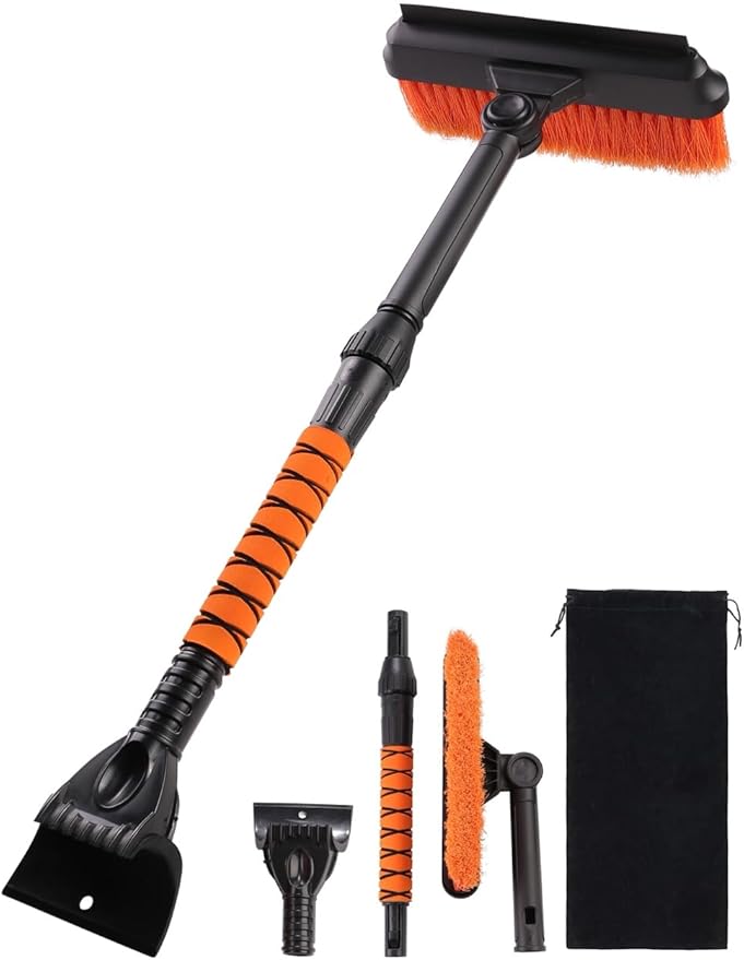 - Portable and Detachable: The snow brush disassembles into 3 parts, the snow brush head, shaft, and ice scraper. The included storage bag makes it easy to carry and store